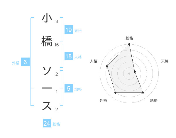 小橋 ソースさんを姓名の画数から五運を鑑定