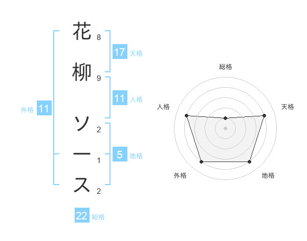 花柳 ソースさんの総格は22画の1点!