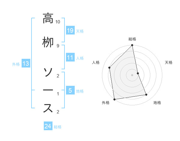 高栁 ソースさんの外格は13画の5点!