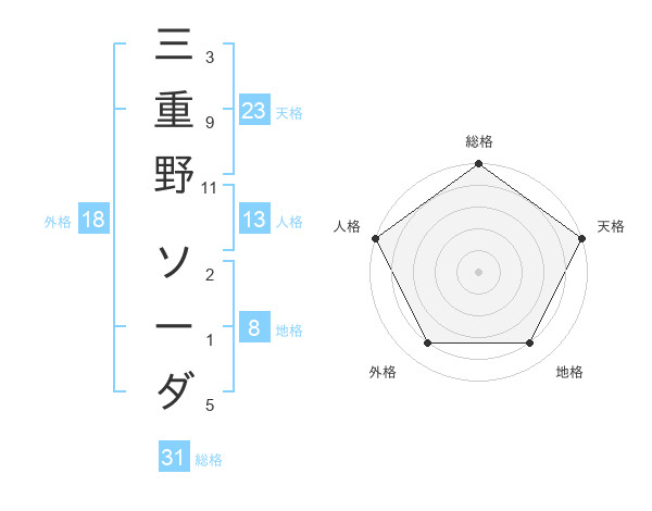 三重野 ソーダさんを姓名の画数から五運を鑑定