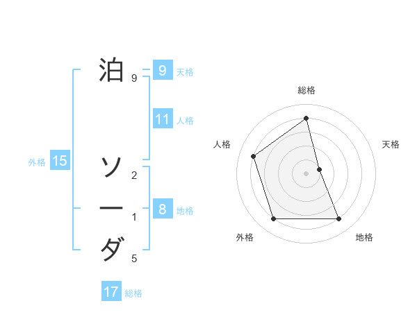 泊 ソーダさんを姓名の画数から五運を鑑定