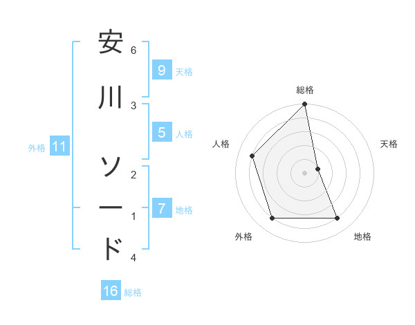 安川 ソードさんの総格は16画の5点!