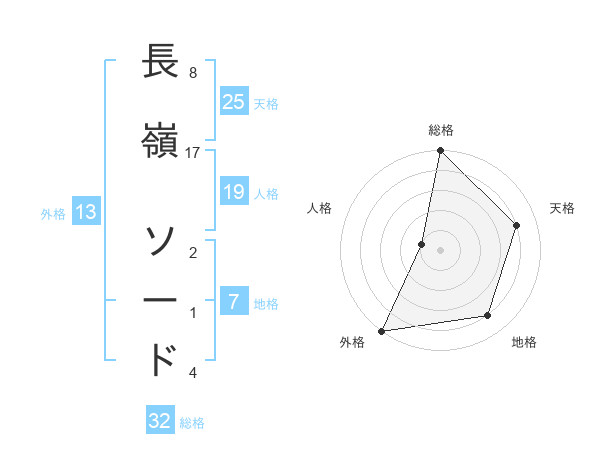 長嶺 ソードさんを姓名の画数から五運を鑑定