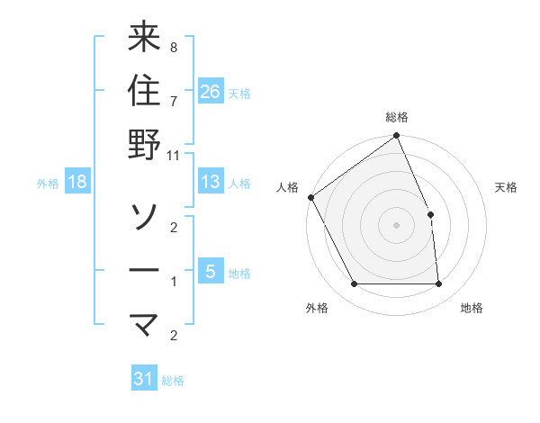 来住野 ソーマさんを姓名の画数から五運を鑑定