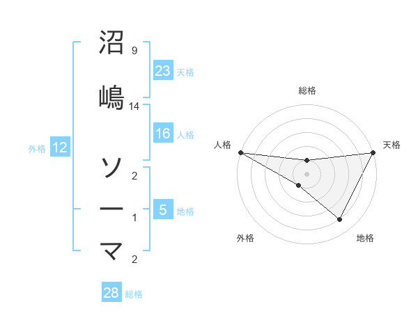 沼嶋 ソーマさんを姓名の画数から五運を鑑定