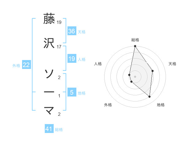 藤沢 ソーマさんの地格は5画の4点!