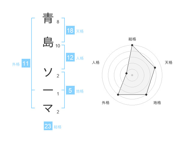 青島 ソーマさんを姓名の画数から五運を鑑定