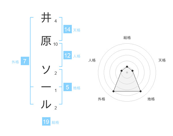 井原 ソールさんを姓名の画数から五運を鑑定