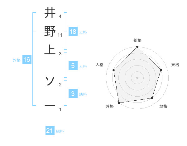 井野上 ソーさんを姓名の画数から五運を鑑定