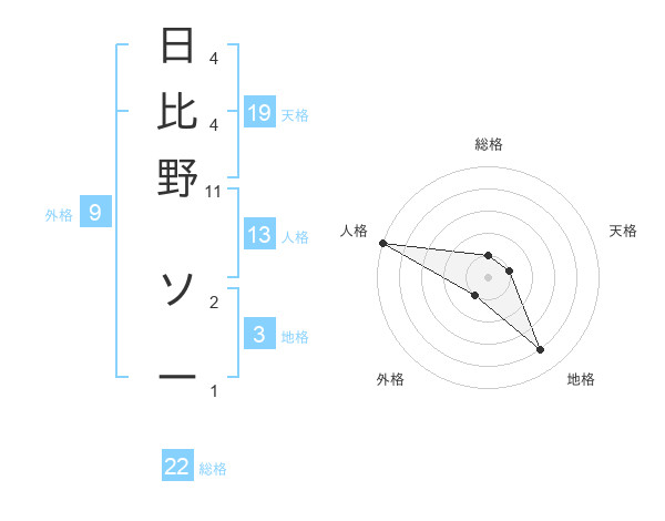 日比野 ソーさんを姓名の画数から五運を鑑定