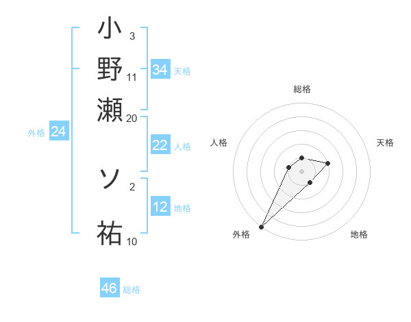 小野瀬 ソ祐さんを姓名の画数から五運を鑑定
