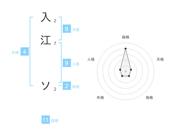 入江 ソさんの総格は11画の4点!