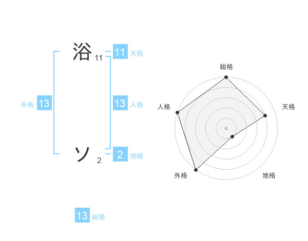 浴 ソさんの外格は13画の5点!