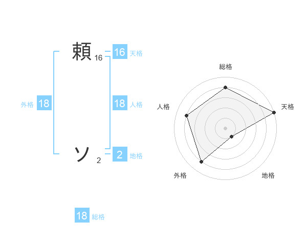 頼 ソさんの総格は18画の4点!