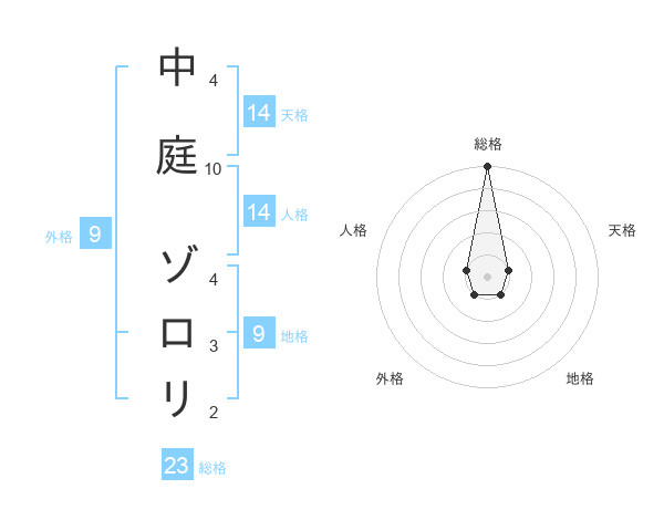 中庭 ゾロリさんの総格は23画の5点!