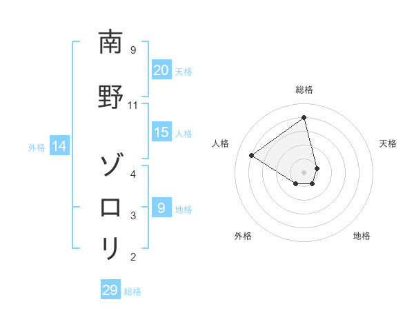 南野 ゾロリさんを姓名の画数から五運を鑑定