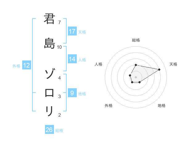君島 ゾロリさんを姓名の画数から五運を鑑定