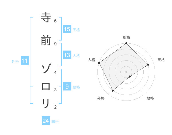 寺前 ゾロリさんの総格は24画の5点!