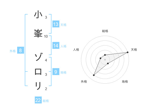 小峯 ゾロリさんを姓名の画数から五運を鑑定