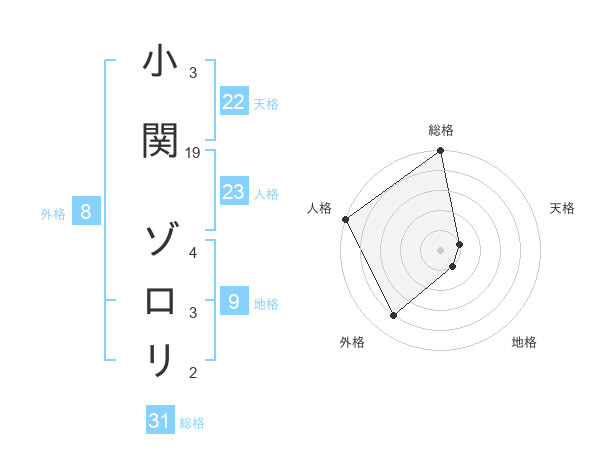 小関 ゾロリさんの総格は31画の5点!