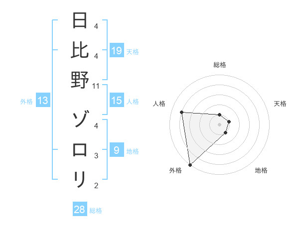 日比野 ゾロリさんの外格は13画の5点!