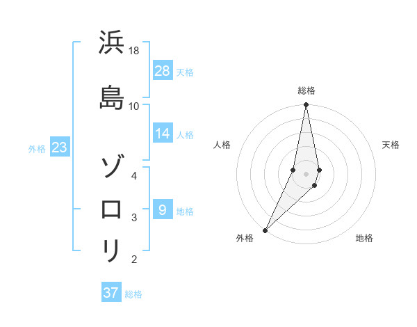 浜島 ゾロリさんの総格は37画の5点!