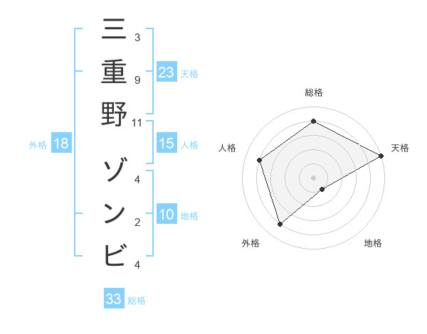 三重野 ゾンビさんを姓名の画数から五運を鑑定