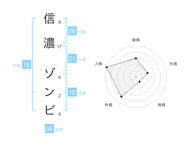 信濃 ゾンビさんを姓名の画数から五運を鑑定