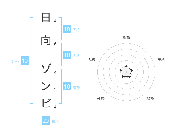 日向 ゾンビさんを姓名の画数から五運を鑑定