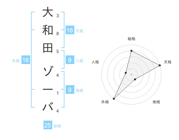 大和田 ゾーバさんの外格は16画の5点!