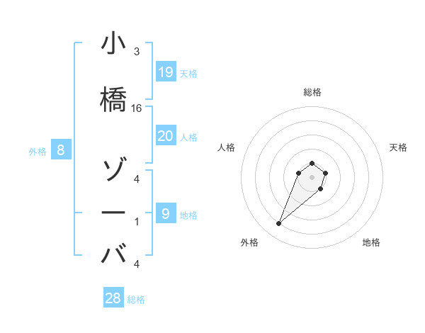 小橋 ゾーバさんの外格は8画の4点!