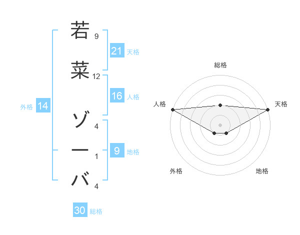 若菜 ゾーバさんの天格は21画の5点!