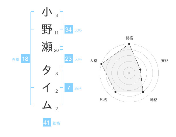 小野瀬 タイムさんを姓名の画数から五運を鑑定