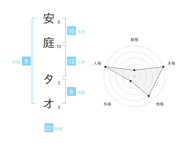 安庭 タオさんの総格は22画の1点!