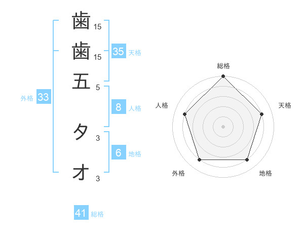 歯歯五 タオさんの総格は41画の5点!