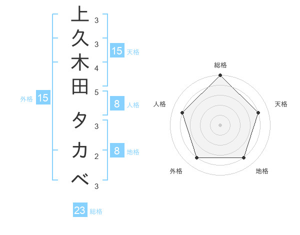 上久木田 タカベさんの総格は23画の5点