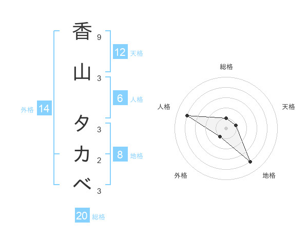 香山 タカベさんの総格は20画の1点