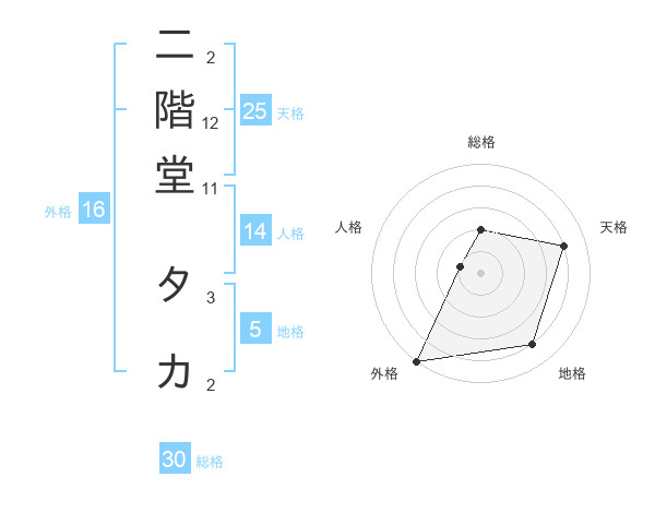 二階堂 タカさんを姓名の画数から五運を鑑定