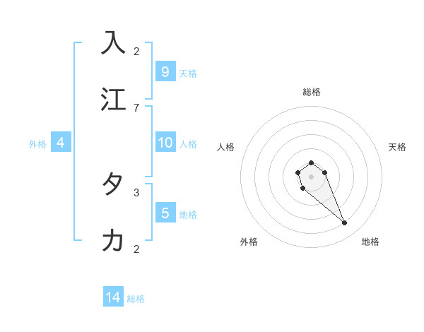 入江 タカさんの総格は14画の1点!