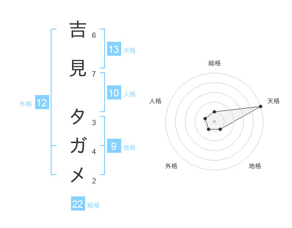 吉見 タガメさんを姓名の画数から五運を鑑定