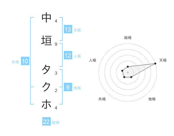 中垣 タクホさんを姓名の画数から五運を鑑定