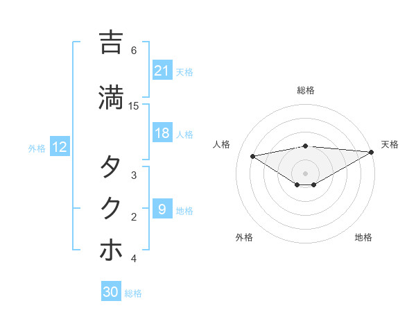 吉満 タクホさんを姓名の画数から五運を鑑定