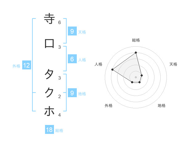 寺口 タクホさんを姓名の画数から五運を鑑定