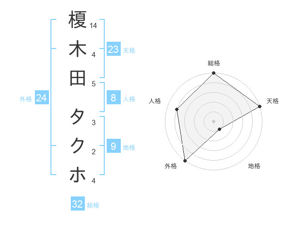 榎木田 タクホさんを姓名の画数から五運を鑑定
