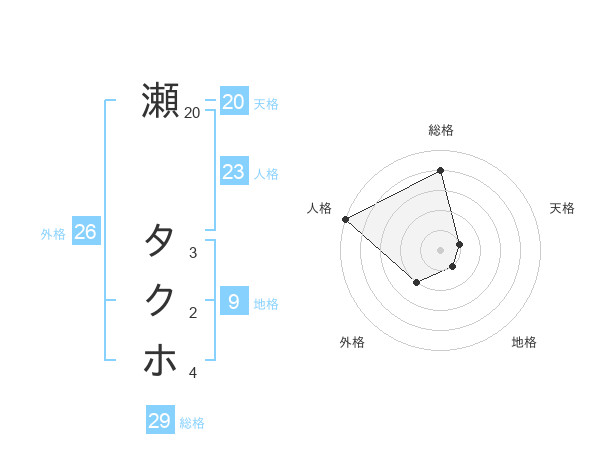 瀬 タクホさんの総格は29画の4点!