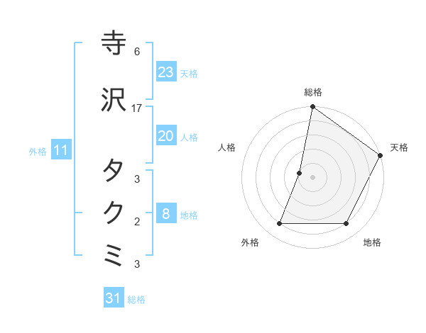 寺沢 タクミさんの天格は23画の5点!
