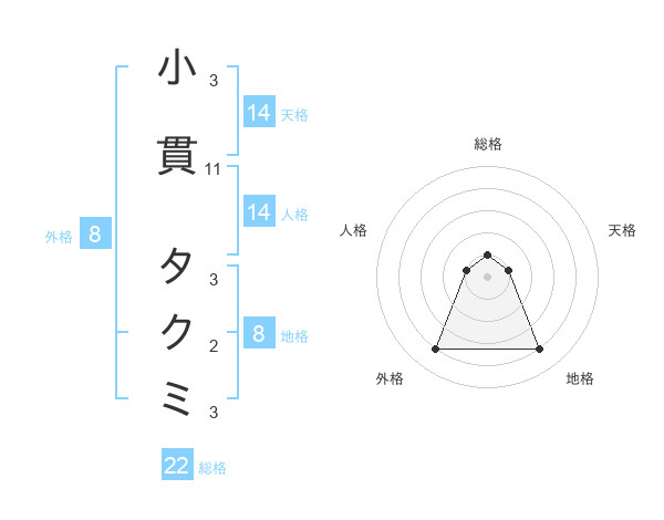 小貫 タクミさんの総格は22画の1点!