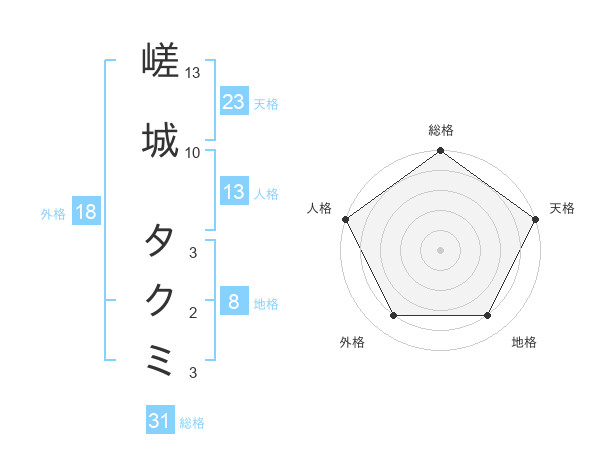 嵯城 タクミさんの総格は31画の5点!