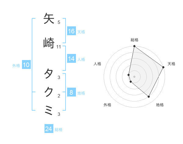 矢崎 タクミさんの総格は24画の5点!