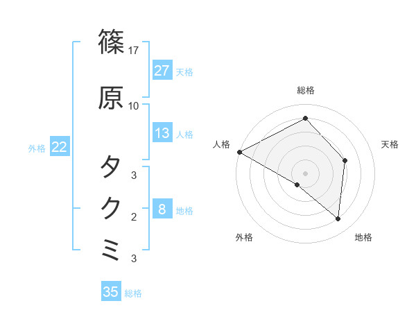 篠原 タクミさんの総格は35画の4点!